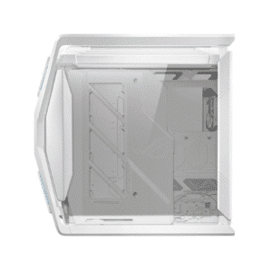 The ASUS ROG Hyperion GR701 is a high-performance, stylish white mid-tower case with a transparent panel, designed to showcase and enhance your gaming setup. It supports multiple motherboard sizes and ensures excellent airflow with PWM fan compatibility.