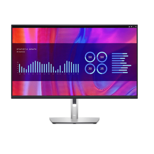 The DELL P3223DE is a 31.5″ LCD monitor designed for business use, featuring a crisp 2560×1440 IPS panel with a 16:9 aspect ratio and 60 Hz refresh rate. Its ergonomic design includes height adjustment, swivel, pivot, and tilt functions, while the matte finish and 5 ms response time ensure clear and comfortable viewing.