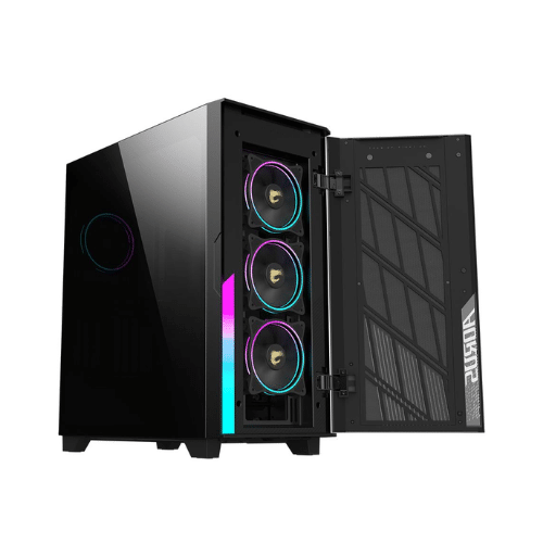 The GIGABYTE AORUS C500 GLASS MidiTower case combines sleek aesthetics with robust functionality, featuring a tempered glass side panel that showcases your build. Designed for maximum compatibility, it supports ATX, EATX, MicroATX, and MiniITX motherboards, making it an ideal choice for gamers and PC builders alike.